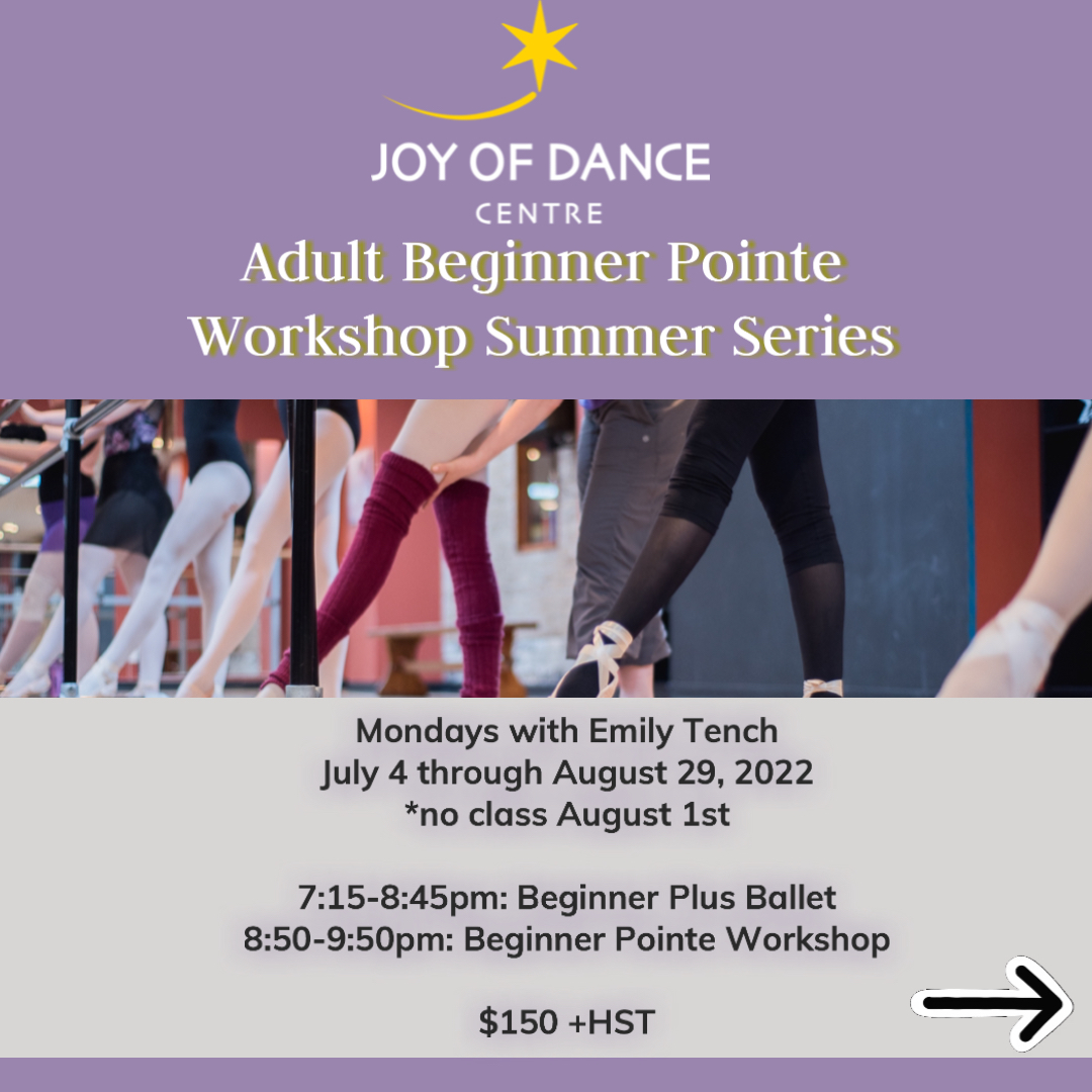 8:50-9:50p.m. Beginner Pointe Workshop – $150+HST