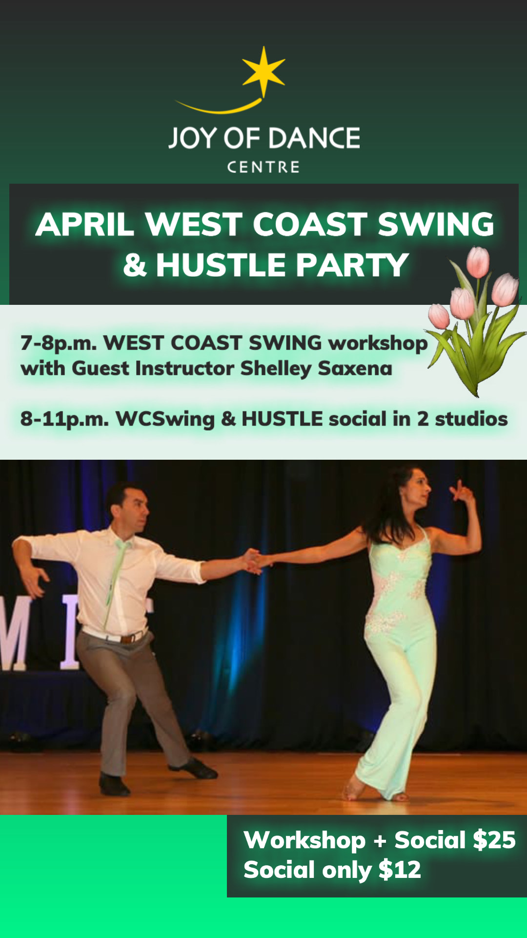 7-8p.m. WEST COAST SWING workshop w/Guest Instructor Shelley Saxena