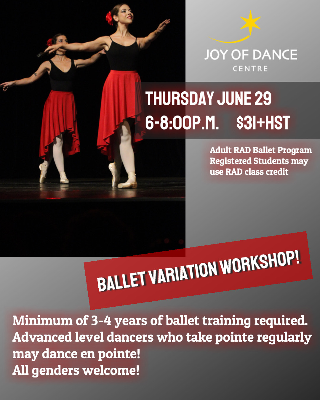 Please come join our Ballet Variation workshop on June 29th at 6p.m. to 8 p.m.