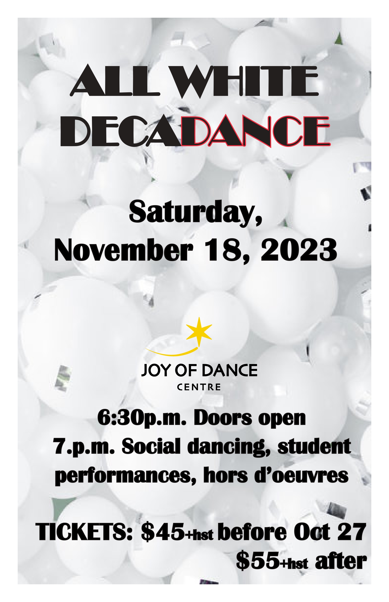 Tickets: $45 +HST BEFORE Oct.27