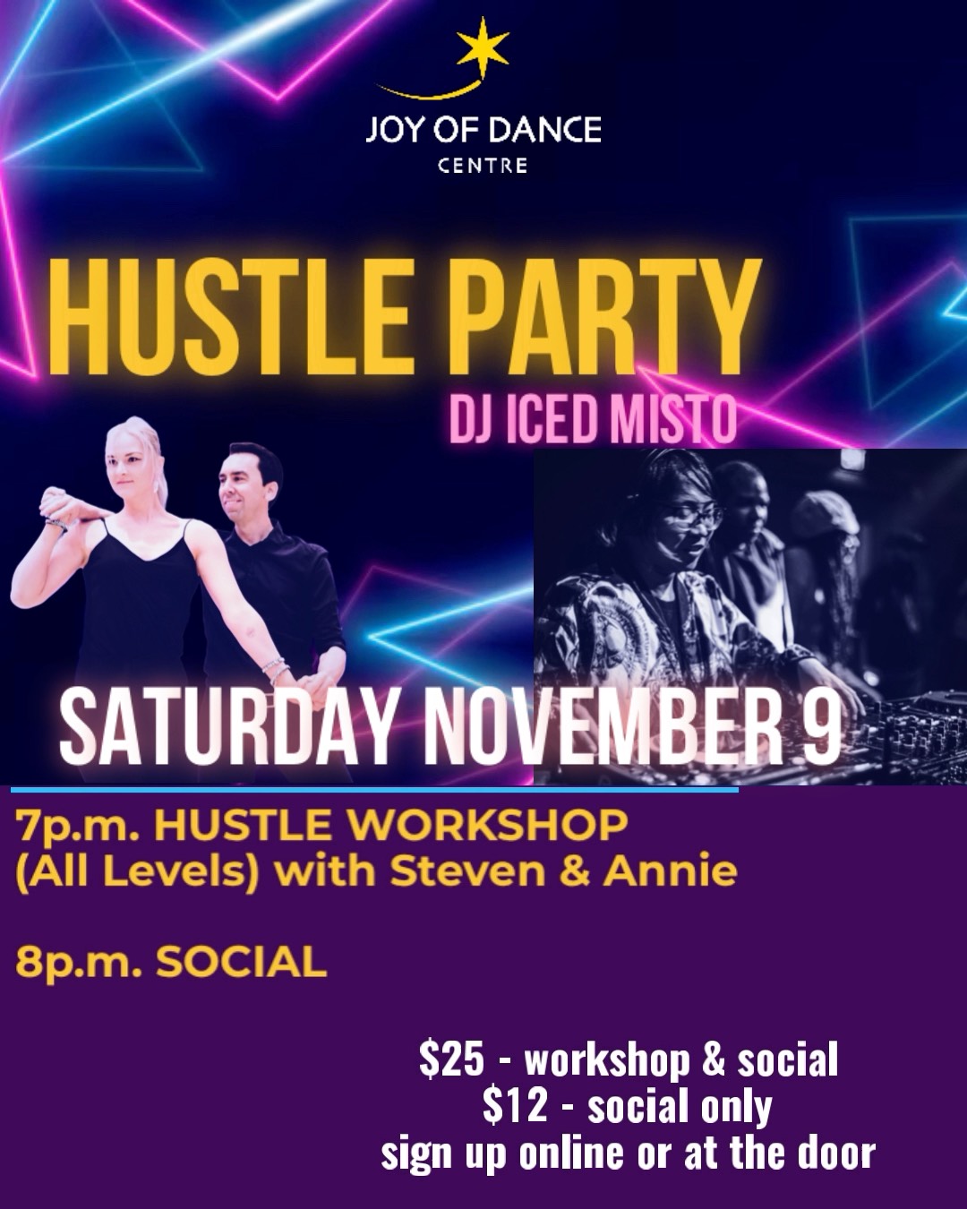 7p.m. HUSTLE (all levels) workshop w/Steven & Annie