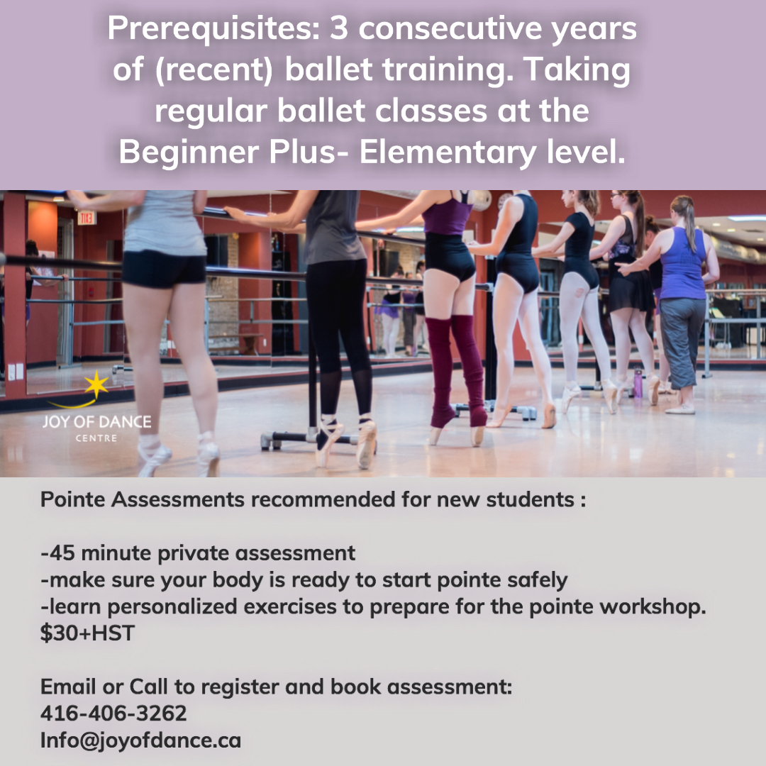 Email (info@www.joyofdance.ca) or call (416-406-3262 ) to register and book an assessment for $30+HST