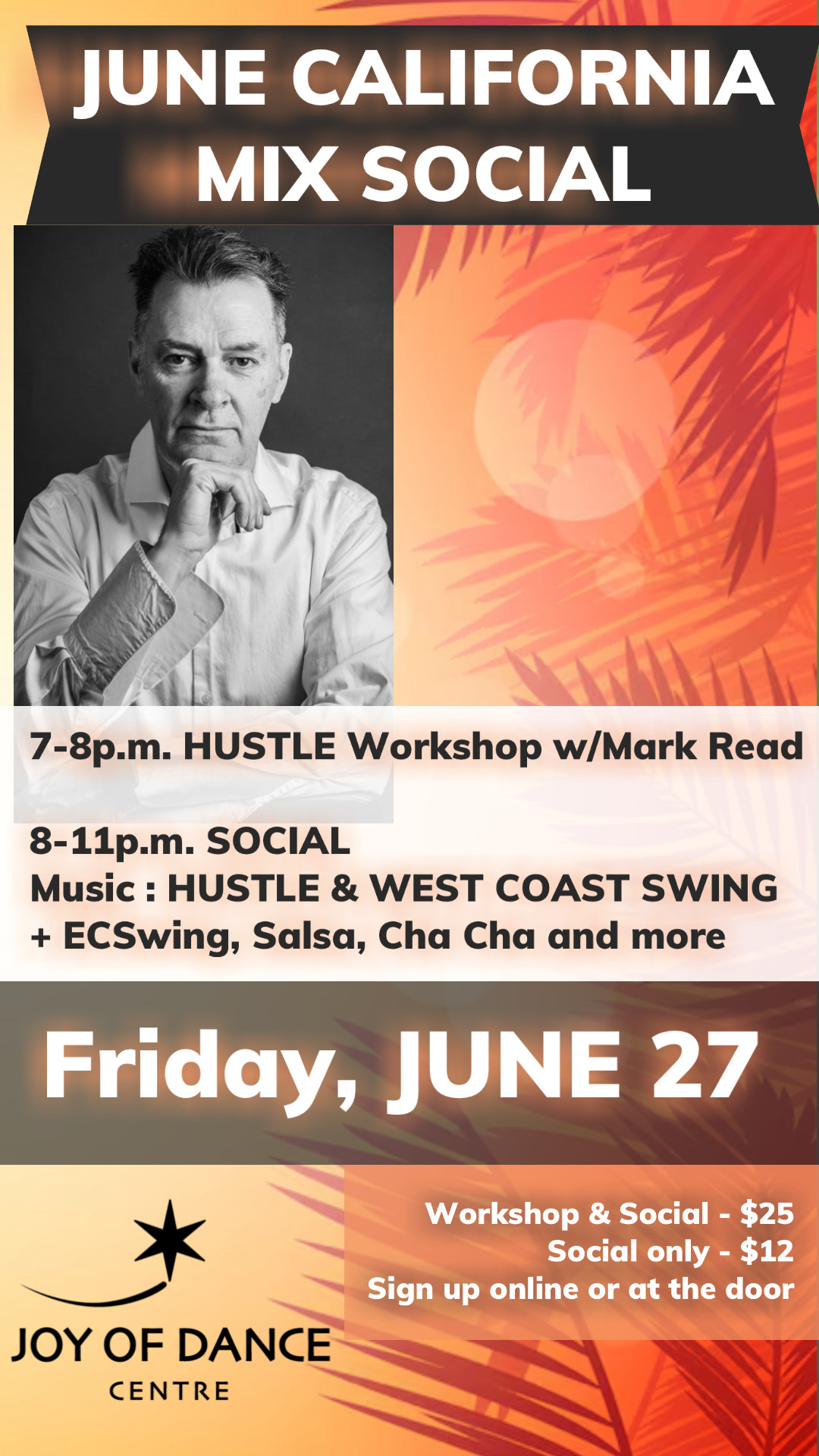8 – 11pm. WEST COAST SWING SOCIAL & HUSTLE – California Mix (Hustle, WCS, Cha Cha, Salsa, ECS)