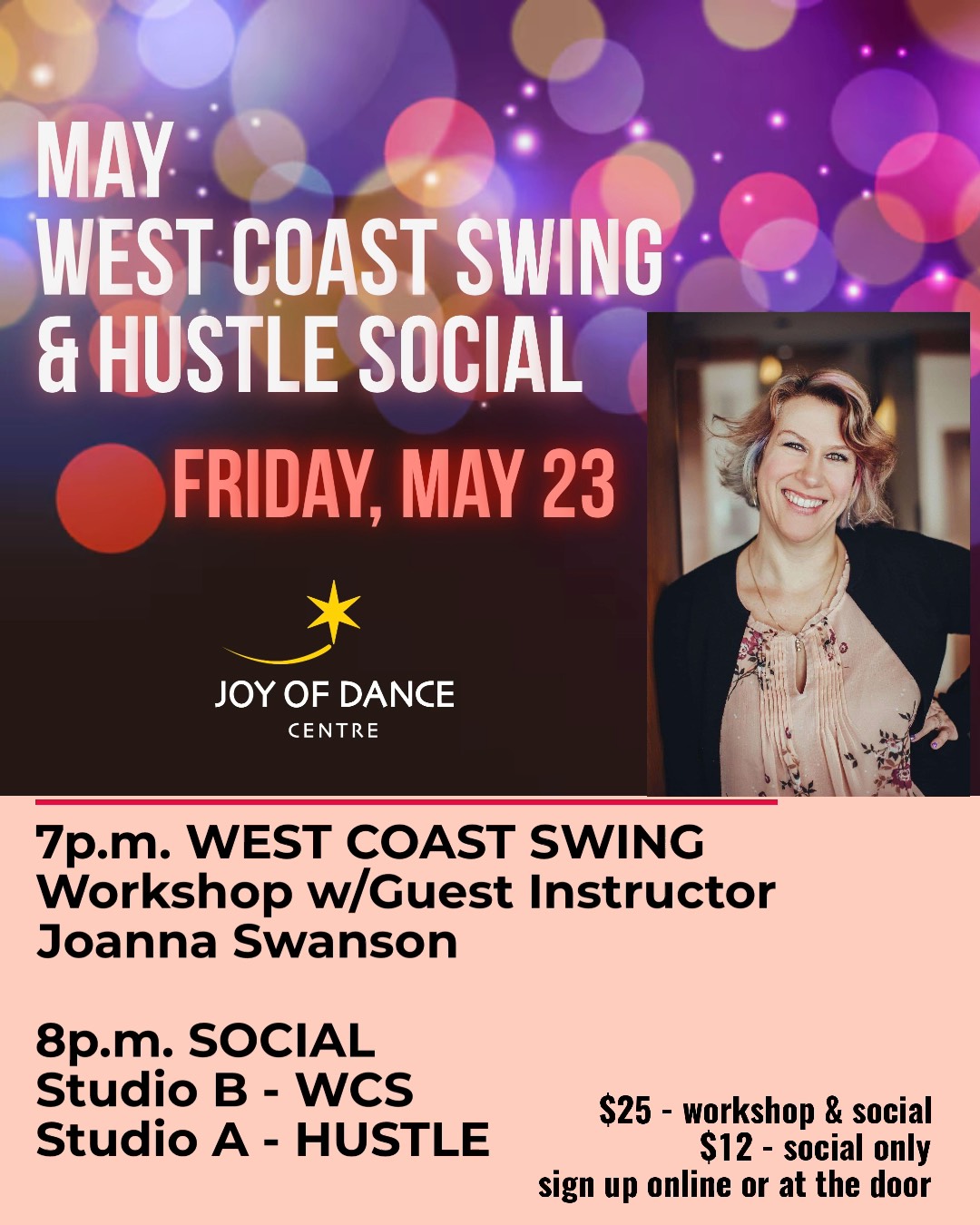 7-8pm. WEST COAST SWING Workshop w/Guest Instructor Joanna Swanson